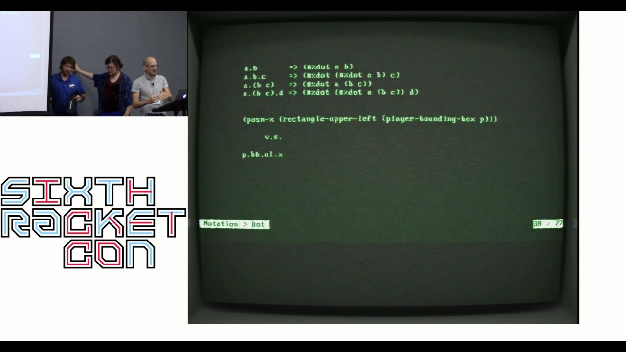 This is not to say that you can't build such a system, though! Racket is totally set up to allow you to define your own #lang, and give it its own reader and parser; you can define the way in which code is parsed, right down to the character level; Rhombus is a perfect example of this.